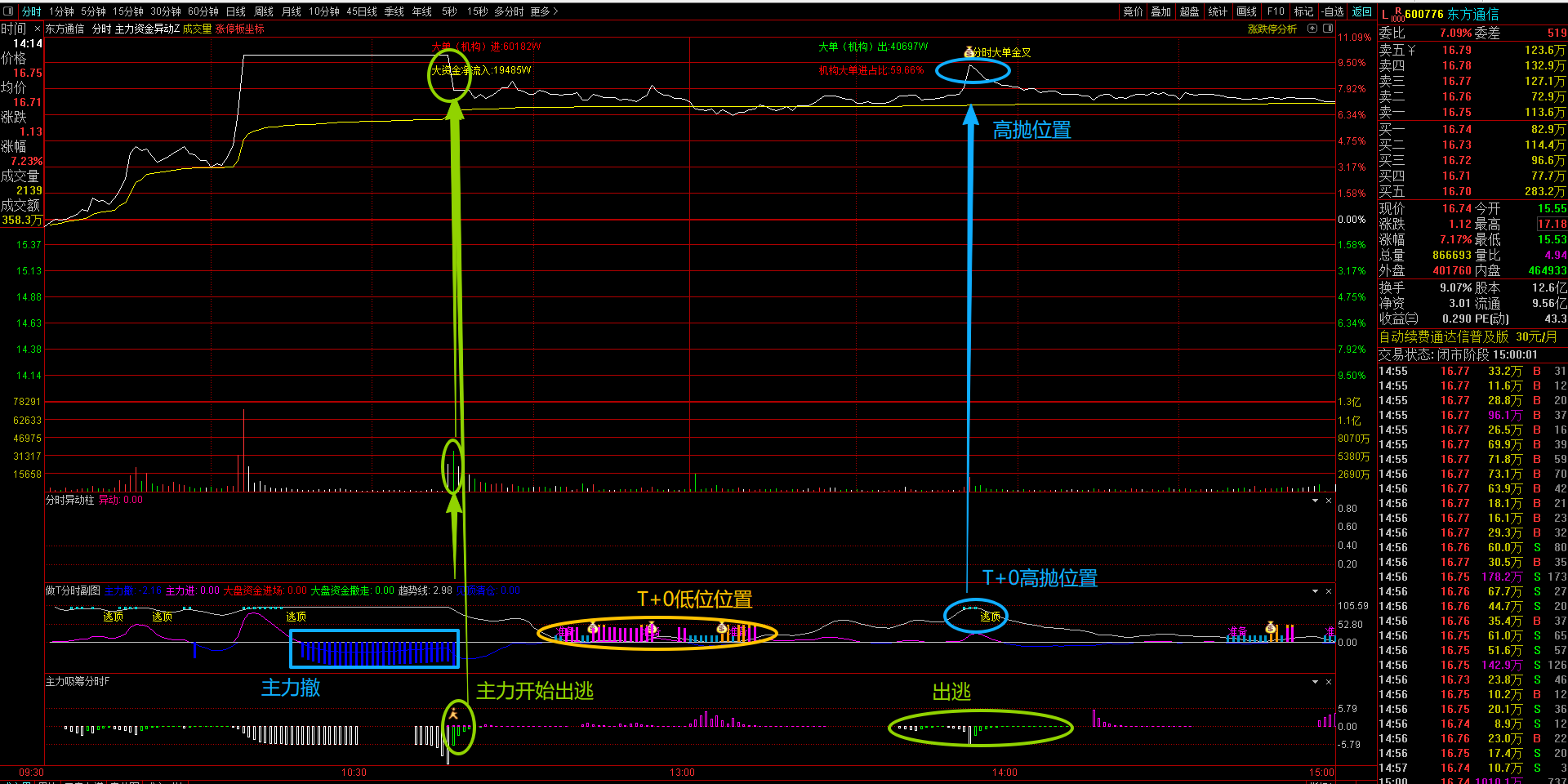 通达信【主力资金异动】分时指标,识别机构大单与金叉,监测主力资金动向,捕捉资金异动柱,T+0 抓涨停,手机电脑通用。