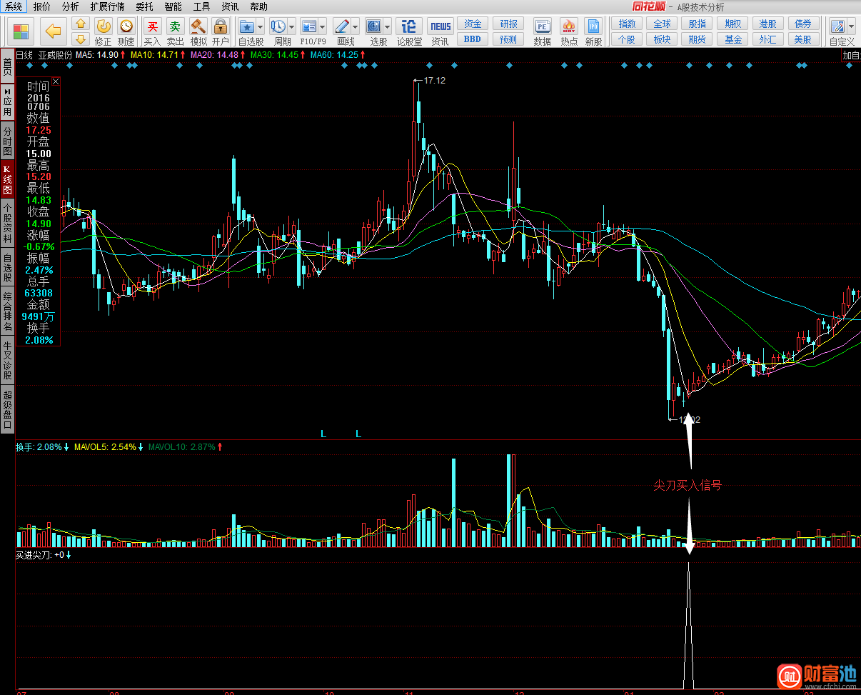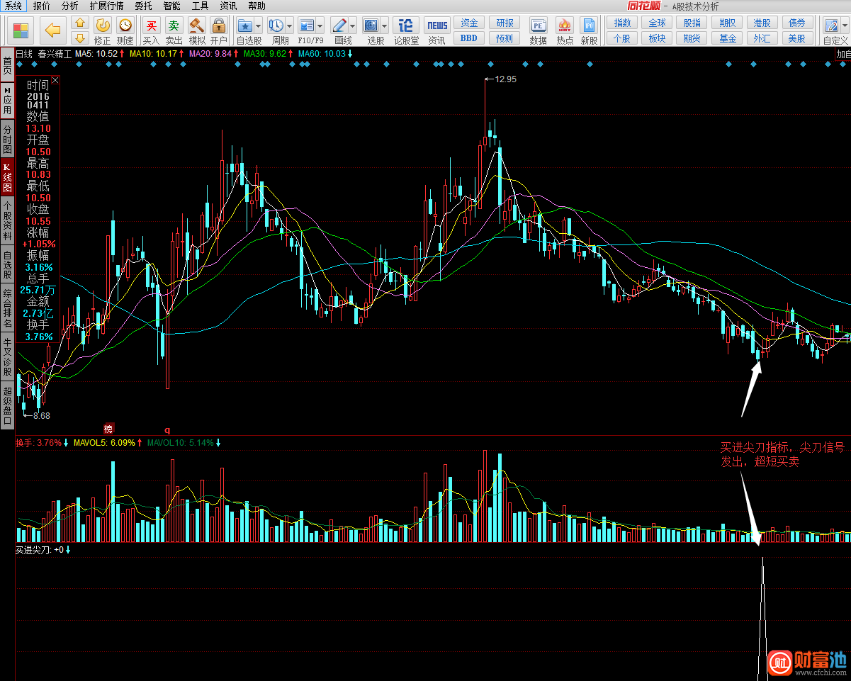 同花顺买进尖刀指标公式