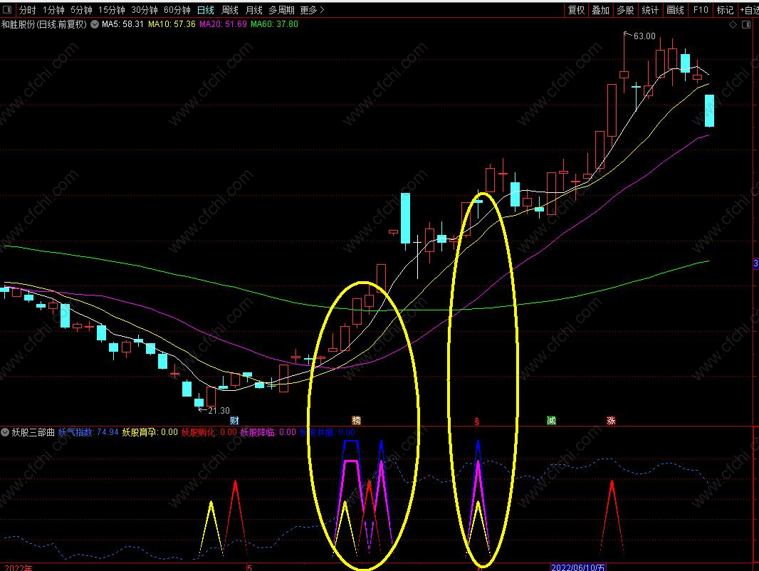 指标使用注意:依次出现妖股育孕,妖股孵化,妖股降临(信号间隔越近,妖气越足),三种信号同时出现也就是幅图上的蓝三角柱,越容易出现大妖股!