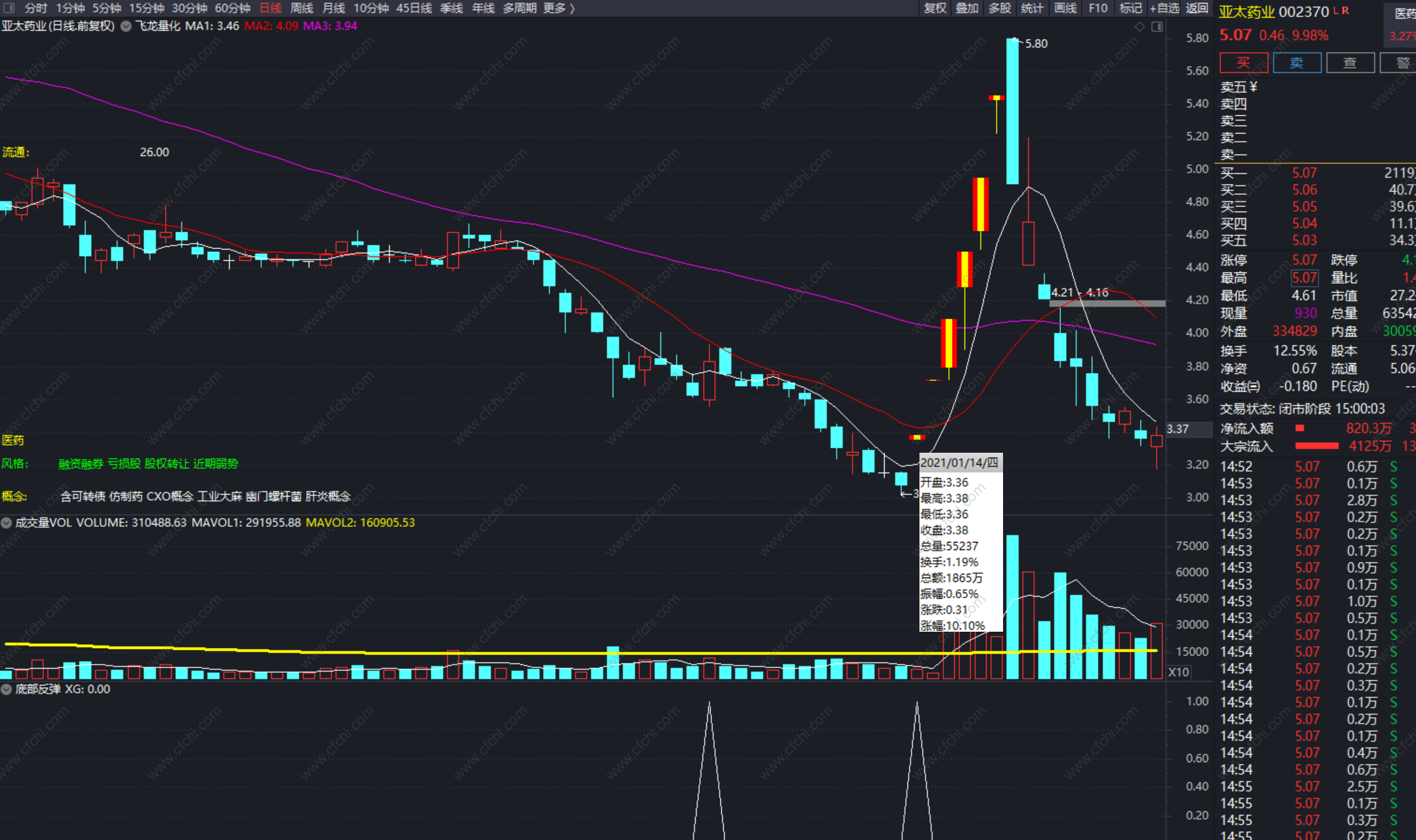 这个指标主要用于指数创阶段新低后, 市场上大部分的个股都出现普跌,并且创一年来的新低, 从近一年的高点下跌幅度超过60%左右,下跌方式 呈现两次下跌,第一次下跌后 横盘一个月左右后 再次急速下跌。操作的方式主要是用于打板,在底部只有强势涨停的票 才可能产生连板的赚钱效应。等市场情绪见底后 市场就会出现一大波的底部反弹的个股,在选择的过程中, 选早盘急速拉板的票,率先启动则占领先机。有些信号虽然出现,但并未 封板的票 就不操作。本指标只用作通达信软件, 里面有个流通市值的函数,被系统默认成未来函数,实在是没办法。C*FINANCE(7)/100000000<=85;日线级别的信号不飘逸, 不候补.。