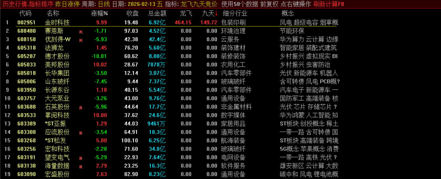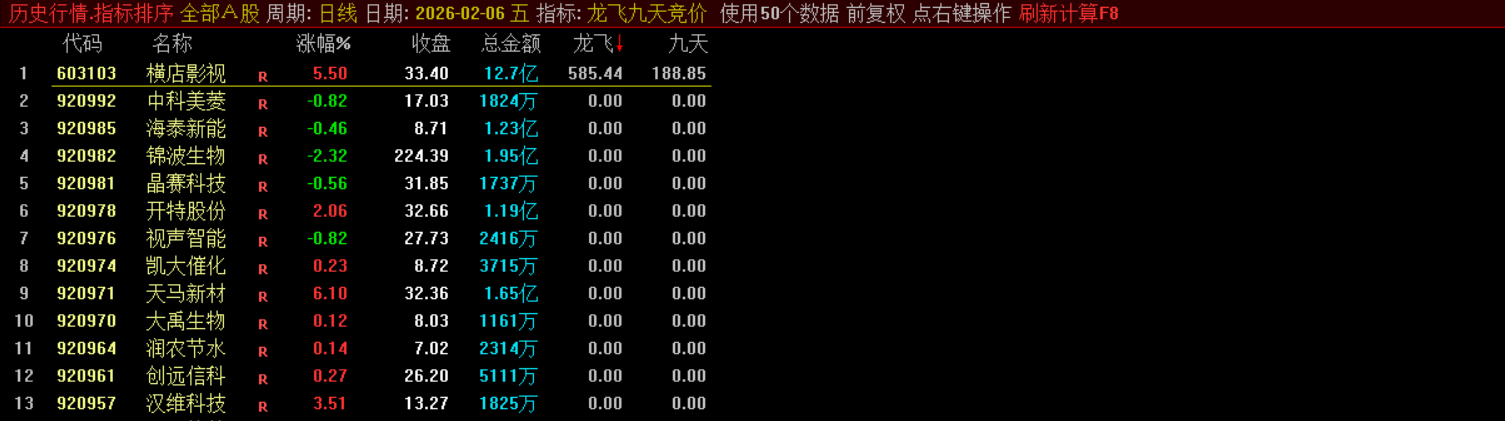 它综合考量个股的安全评分、近期是否连续涨停、开盘涨幅、前一日是否为一字涨停等因素,并结合资金面和流通股本数据,计算出一个“龙飞”动能值。