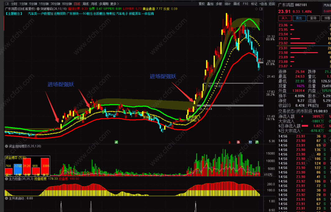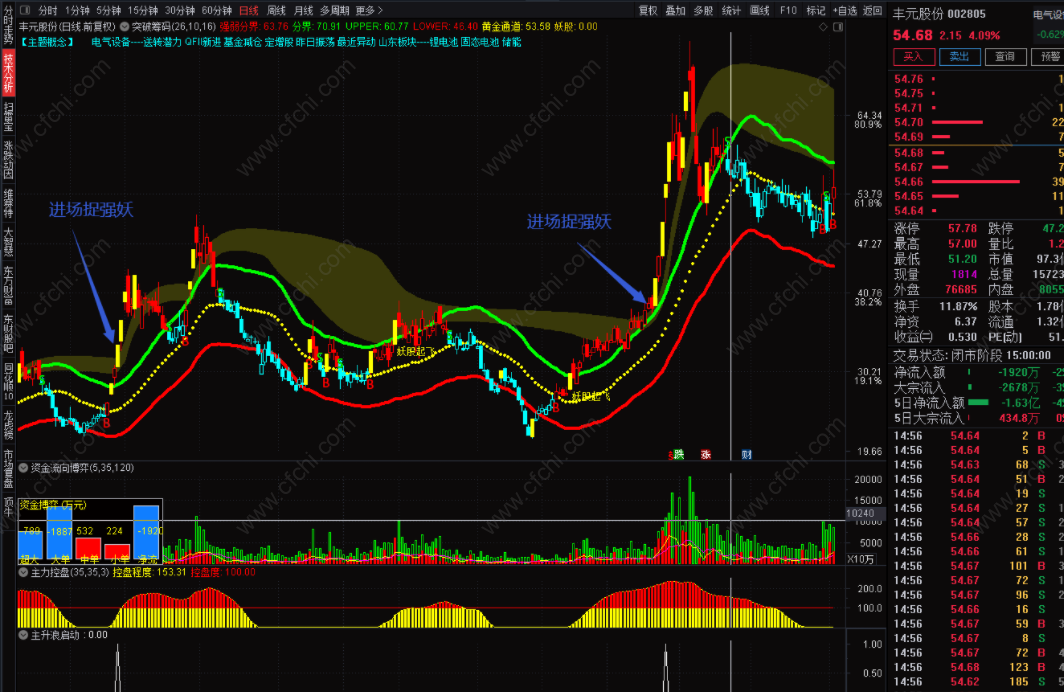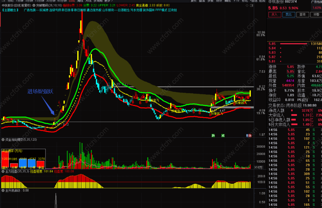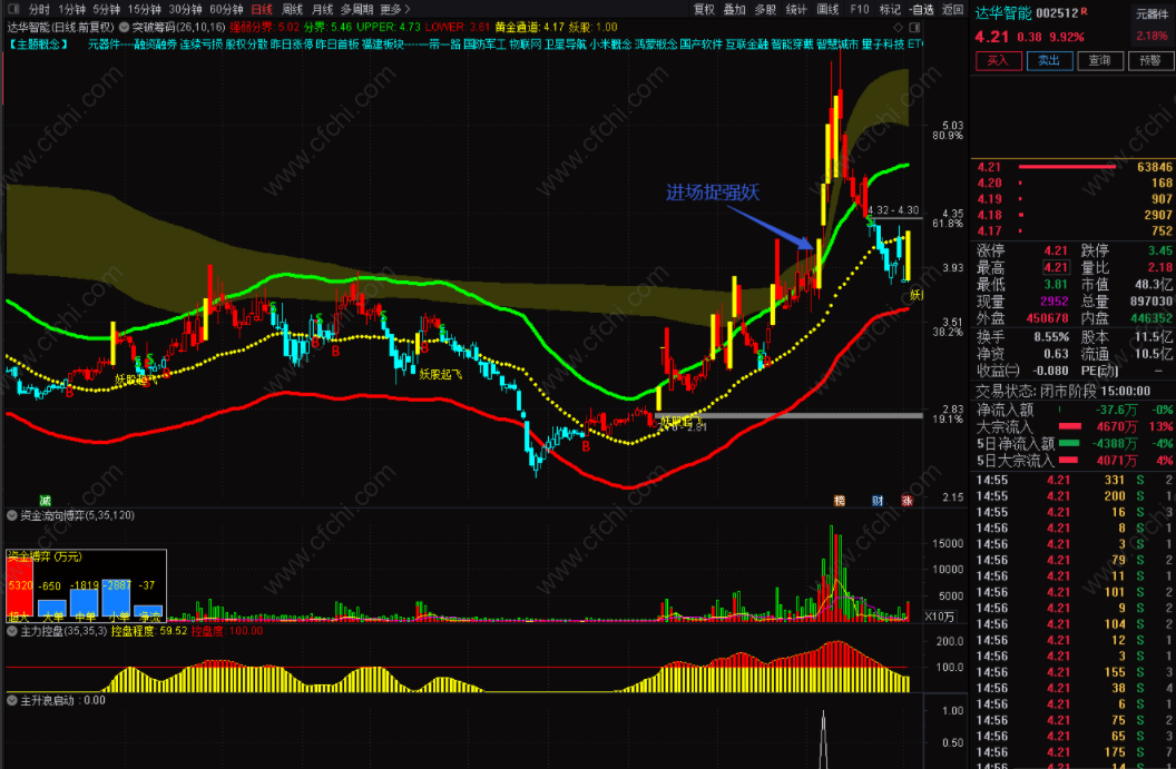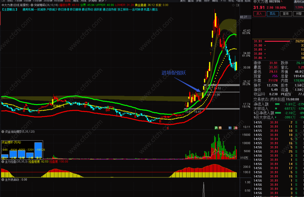 3、副图主升浪启动指示信号出现,进场捉强妖。