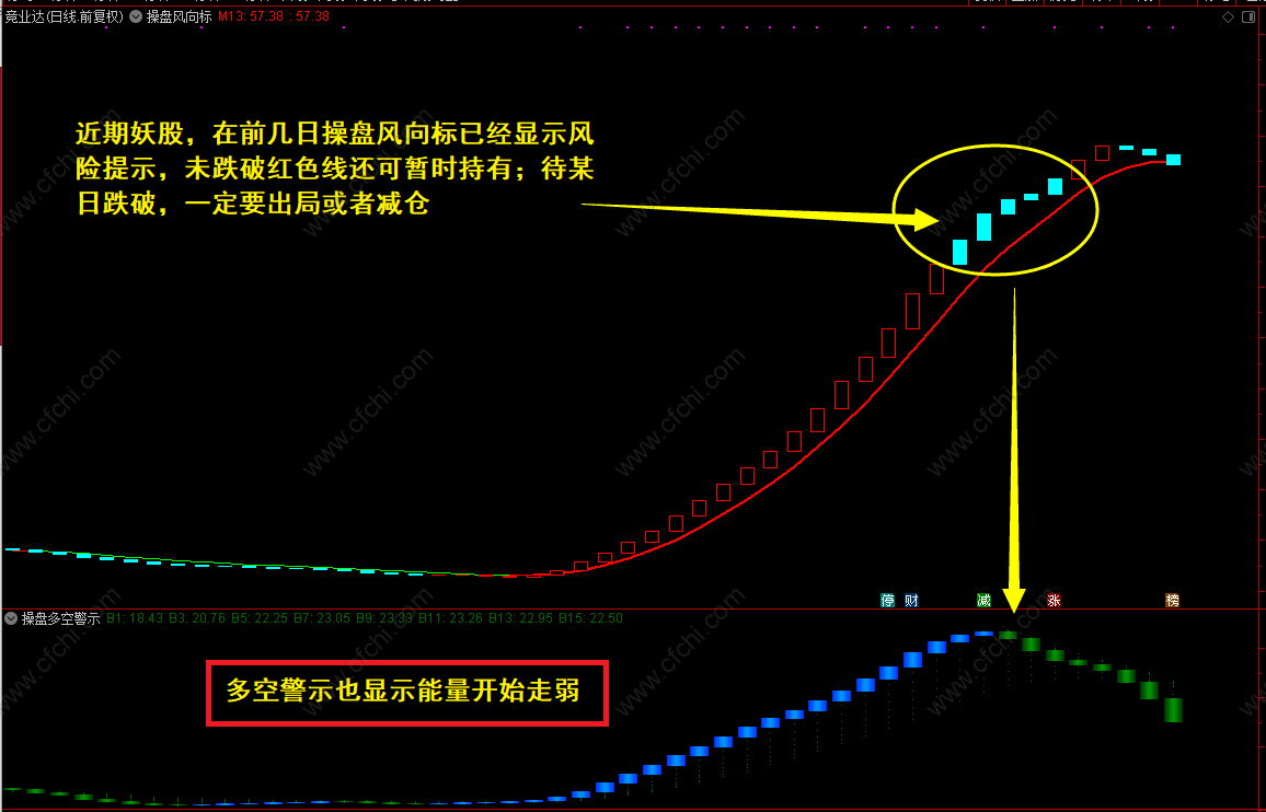 1、 操盘线一线定乾坤。操盘线之下,主力K线不管是红色还是绿色,一律不操作。