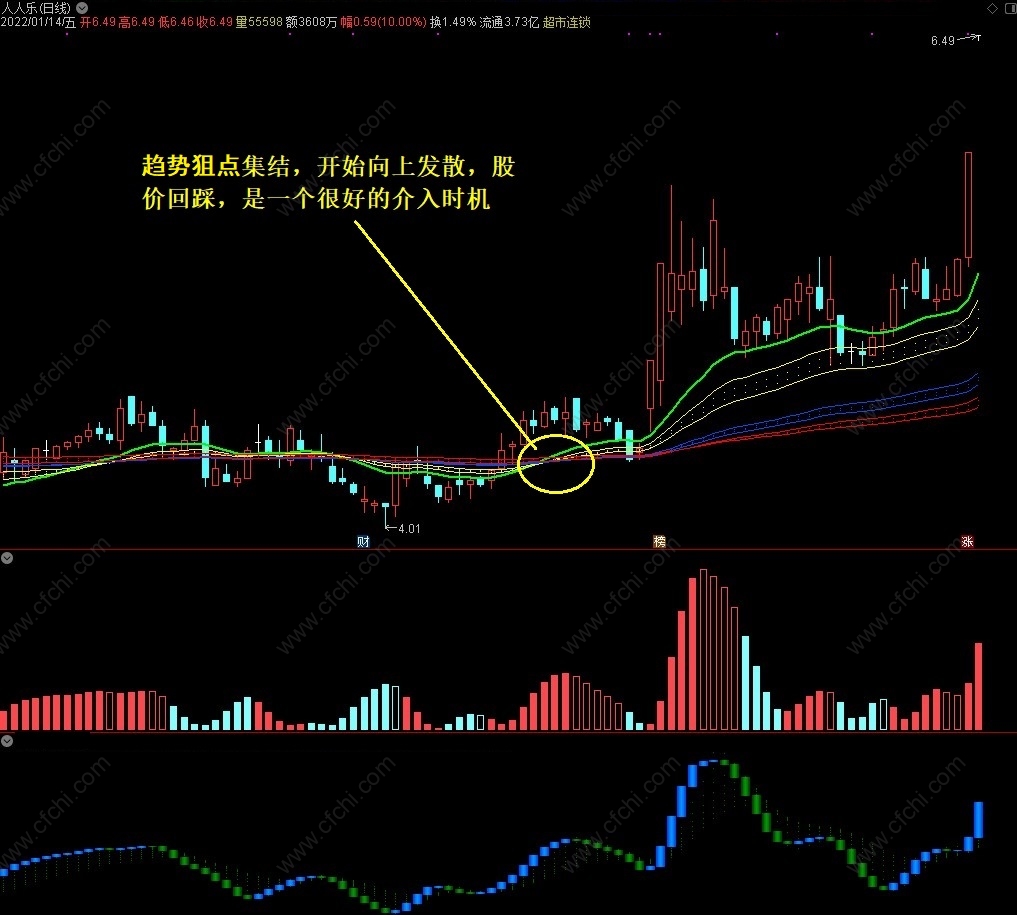 原理:依据移动平均线原理结合成交量功能研发而成,有效揭示股价不同运行周期的核心成本,反应不同运行周期的趋势变化。