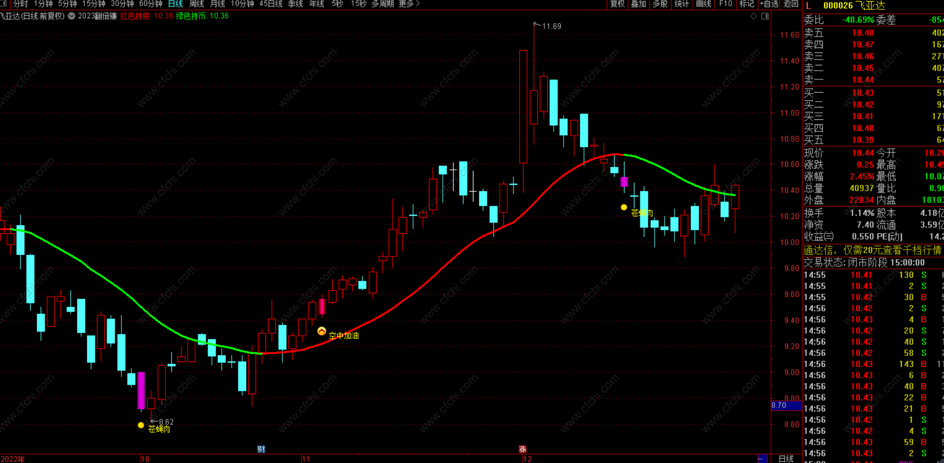 主图出现苍蝇肉信号后,说明第二天大概率有冲高的可能,尾盘买入,第二天冲高获利就卖。属于今买明卖,微利战法。