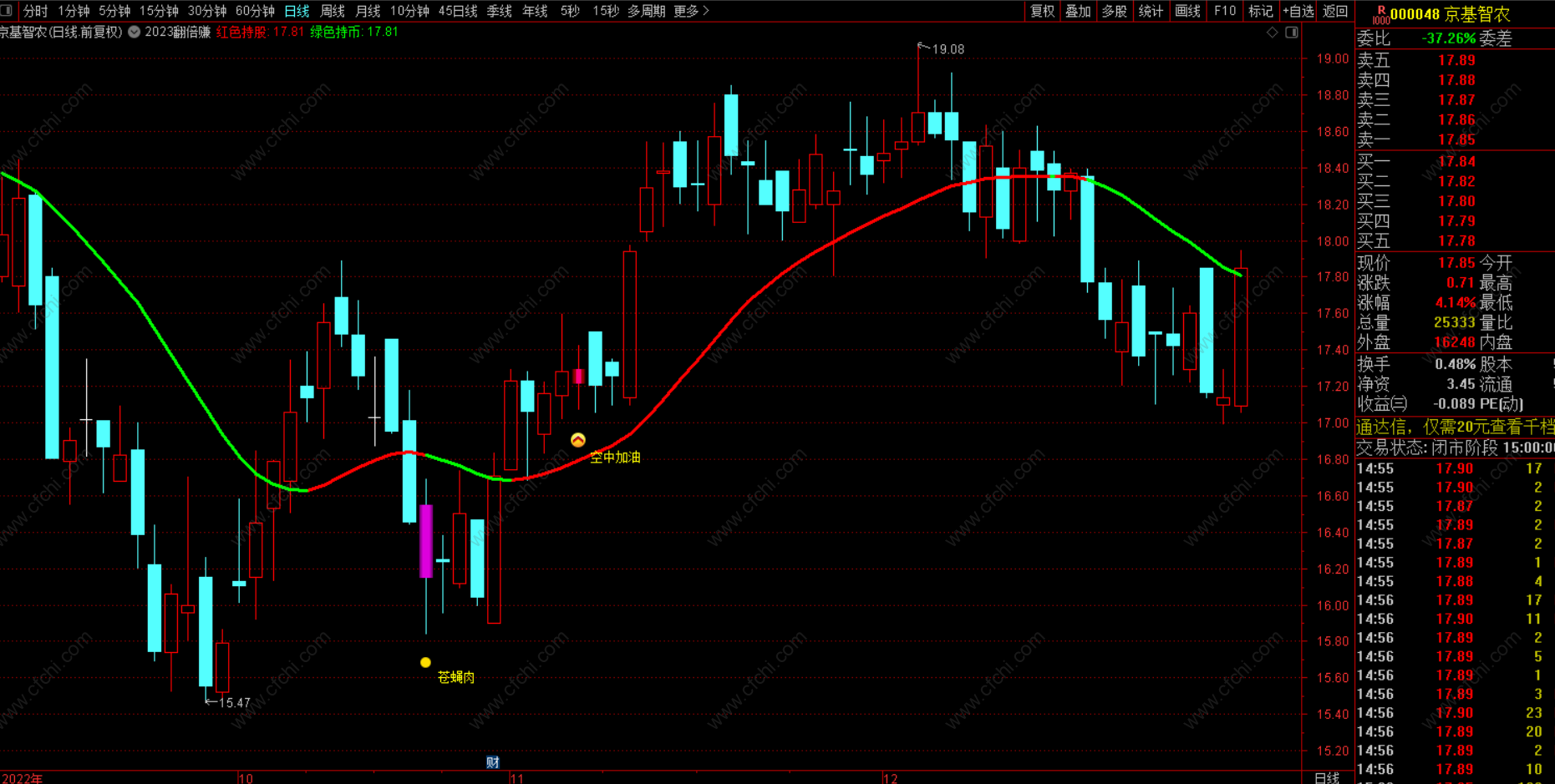 红色趋势线持股,绿色趋势线持币。也就是我们操作股票的时候,如果想要赚钱,一定要顺势而为。