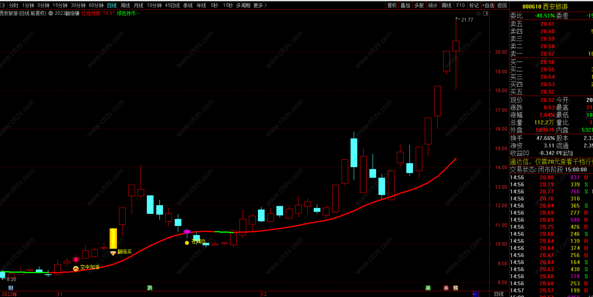 主图出现翻倍买信号后,股票进入强势状态,这个时候买入,持有一段时间,可以获得可观的收益。
