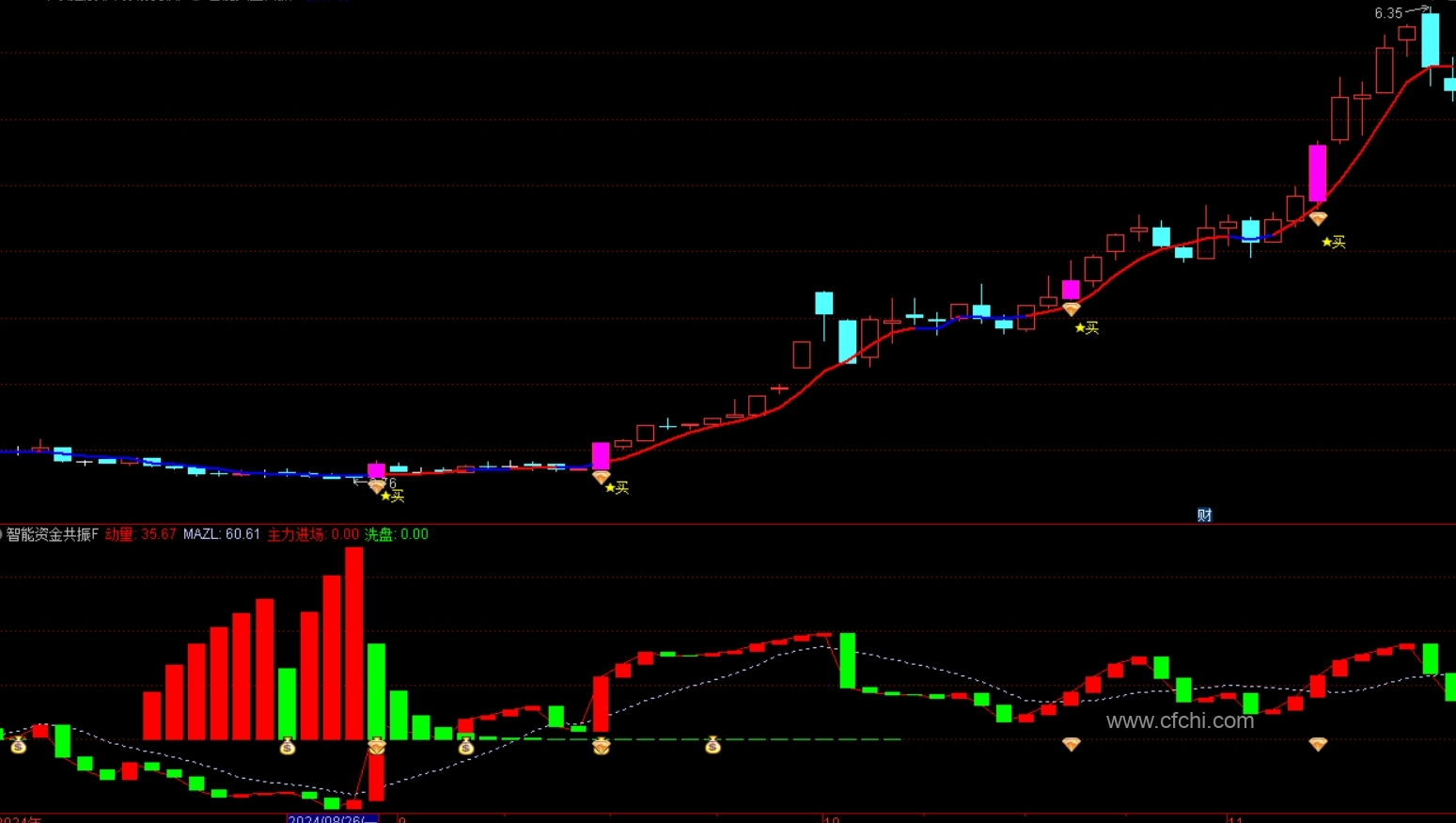 3、当资金流向指标上升时,表示主力资金正在积极吸筹进场,红色柱的出现是主力资金入场的明确信号。
