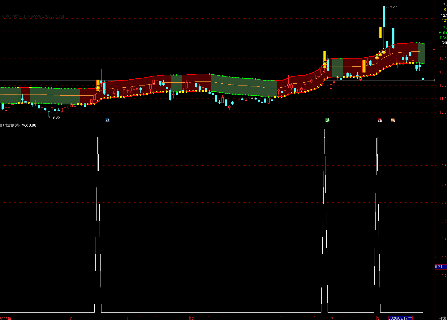 操作策略:当价格站稳基准线且线条向上发散时,视为多头强势,可持股或逢低介入;当价格跌破基准线且线条向下拐头时,视为空头主导,应减仓或观望。柱状图颜色转红代表做多信号,转绿代表风险释放。