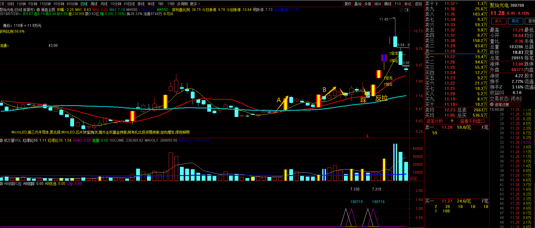 【AB回踩C拉】在平台附近两波放量K线回踩后反拉.(关于未来函数的说明)