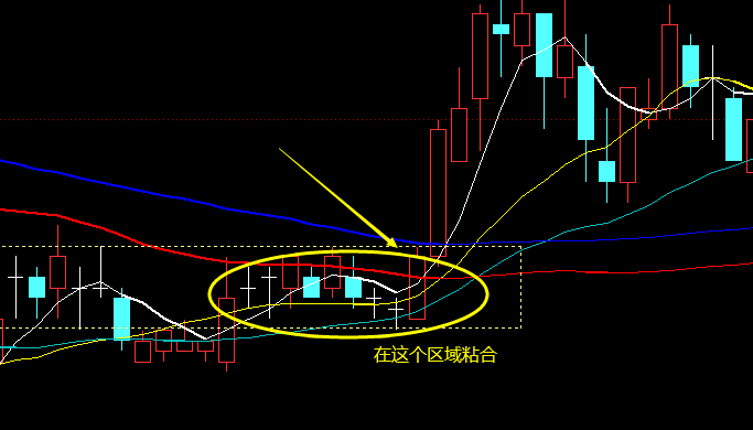 均线粘合的定义是什么均线粘合究其根本,是由均线自身的特点决定的。均线是对价格的平均运算,由此,我们可以知道所谓的均线粘合形态形成的原因其实就是股价经过长期的震荡整理,使得长、短期均线数值接近形成的。从均线的角度看是均线粘合,从形态的角度看,是箱体整理,从筹码分布角度看是筹码高度集中。均线粘合形态特征均线粘合形态形成的原因是股价经过长期的震荡整理,使得长、短期均线数值接近形成的,从均线角度来看就是均